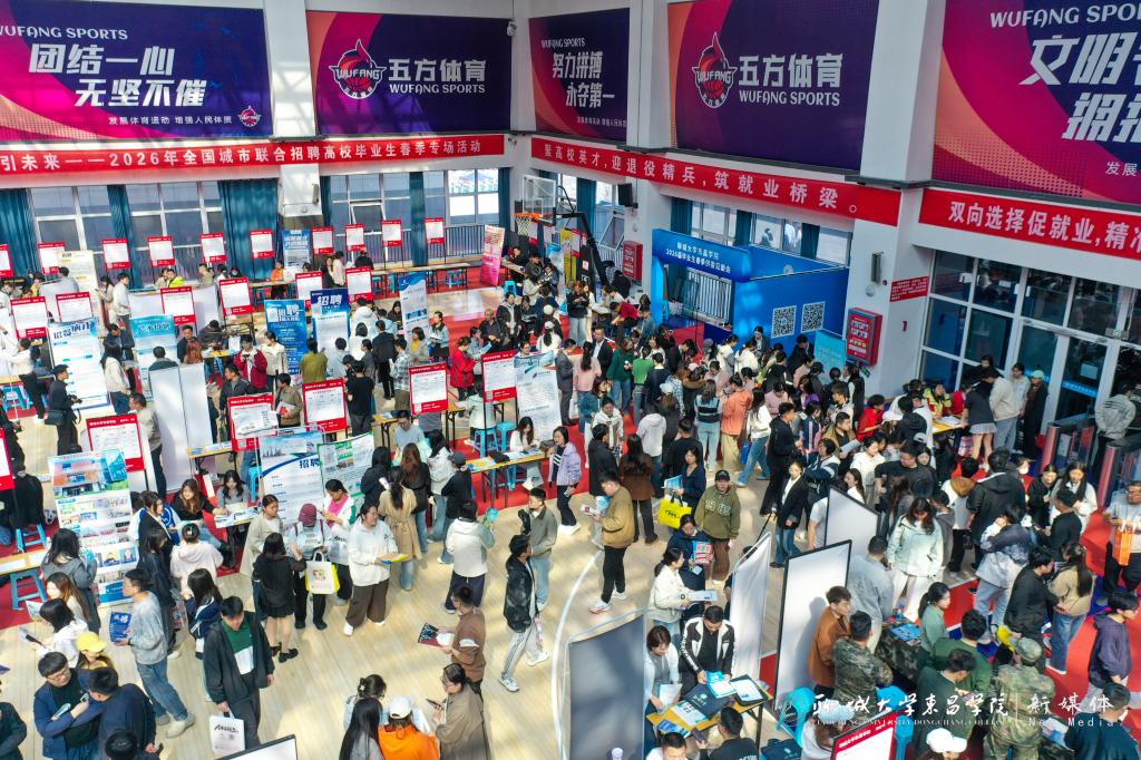 4月11日,由我校联合聊城市人力资源和社会保障局、市工业和信息化局、市退役军人事务局共同举办的2026届毕业生春季供需见面会在体育馆举行。
