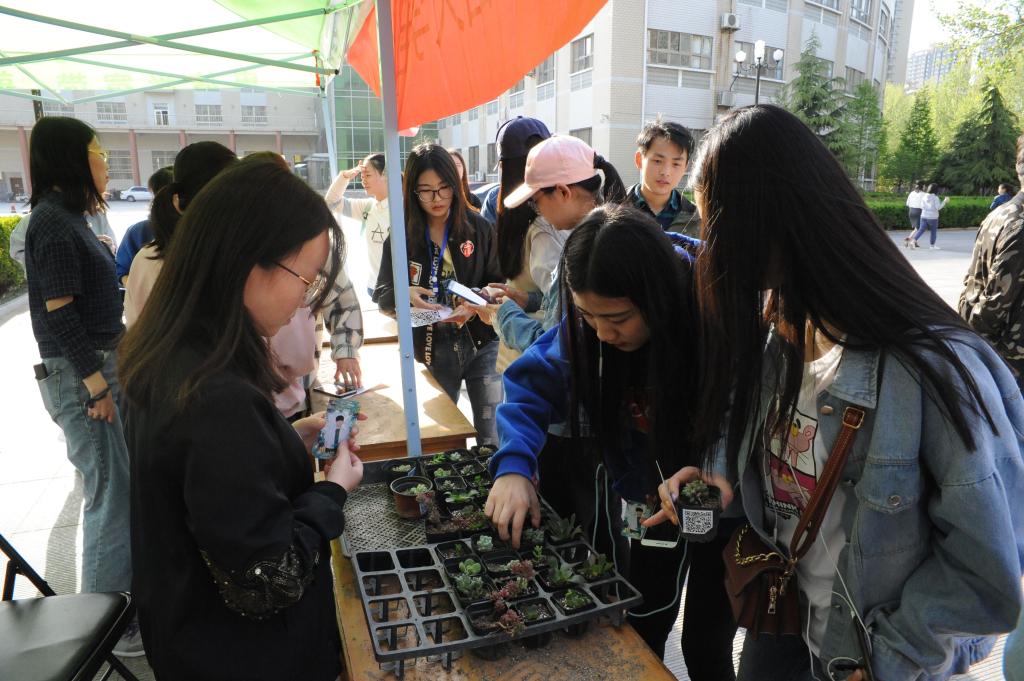 本网讯青春不留白,有种一起来。4月15日下午,由我院组宣部新媒体中心主办的为期两天的第八届全国大学生绿植领养活动,在我院南区小广场火热进行,我院同学积极参与。