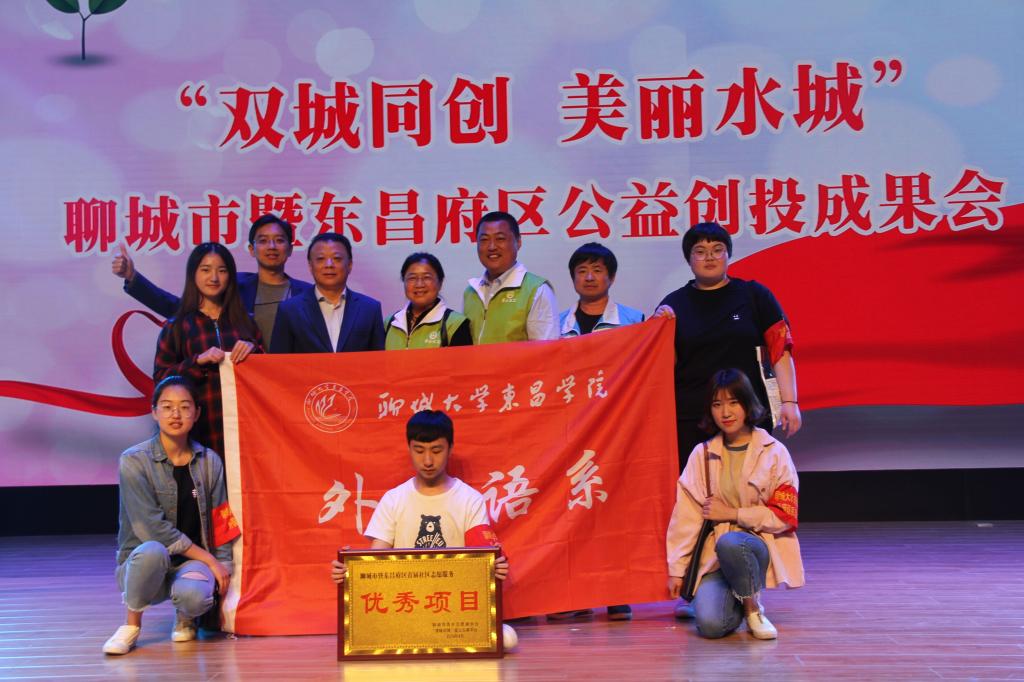 本网讯 5月2日,在五四青年节来临之际,我院外国语系与聊城市蒲心社会工作服务中心共同组织实施的“益乐坊”公益项目,经过“双城同创 美丽水城”活动的审核,最终荣获聊城市首届社区志愿服务“优秀项目奖”。活动在聊城市实验小学礼堂举办,聊城市委副书记李春田,聊城市人大常委会党组副书记、副主任朱加云,聊城市副市长、阳谷县县委书记田中俊,聊城市政协副主席、九三学社聊城市委主委黄勇,区委书记荣红智,共青团聊城市委书记杨曙光等出席。