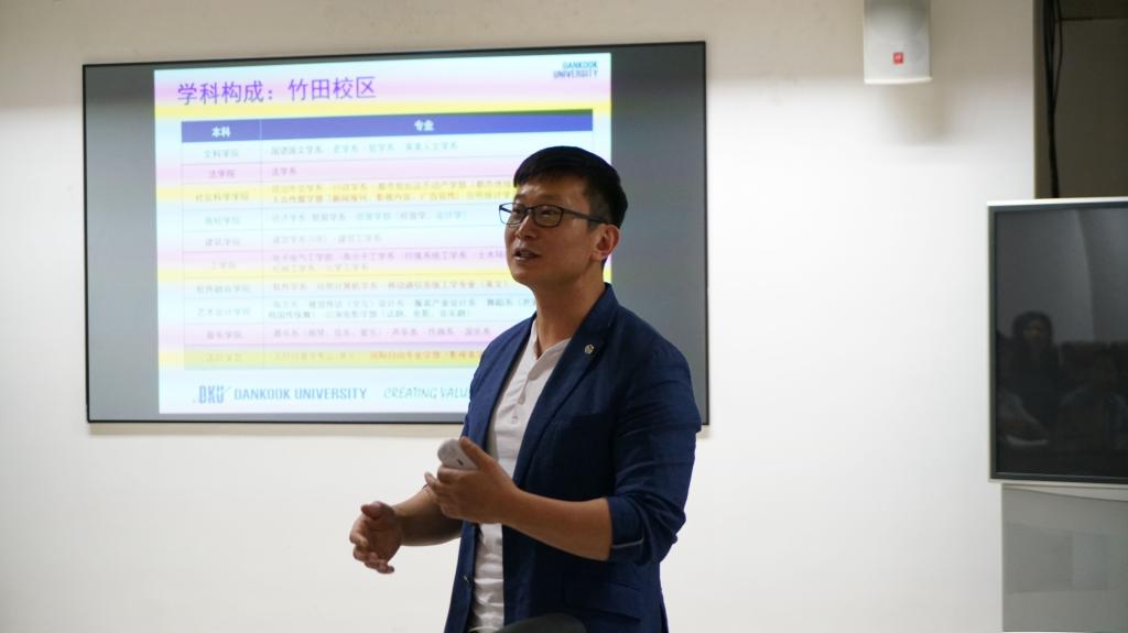 座谈会上,刘娜首先对曹成铉一行的到来表示热烈欢迎。曹成铉表示,十分欢迎我院学子到檀国大学交流学习,檀国大学将在生活、学习及奖学金等方面给予留学生全面帮助,希望双方在当天交流的基础上能进一步深入合作。他还从历史、规模、专业种类、师资、人才等方面介绍了檀国大学的基本情况,并就硕博连读等问题与我院师生进行了深入交流。