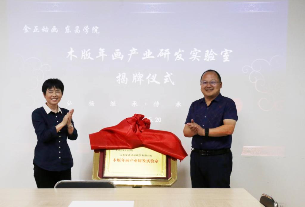 本网讯 5月20日,院长助理王淑珍,美术设计系有关领导、老师来到山东金正动画股份有限公司走访调研,同时为东昌学院木版年画产业研发实验室揭牌。双方就深入实施“访企拓岗”、建立常态化交流合作机制、促进毕业生更加充分更高质量就业,以及进一步加强校企合作进行了深入交流。