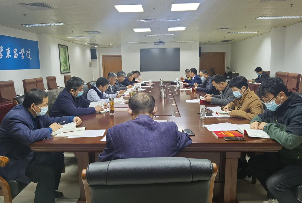 本网讯 11月9日下午,学院党委理论学习中心组(扩大)在办公楼会议室召开2022年第7次专题学习研讨,集体学习习近平总书记在中国共产党第二十次全国代表大会上的报告。会议由党委书记王强主持,部分处室负责人与系部书记、主任列席会议。