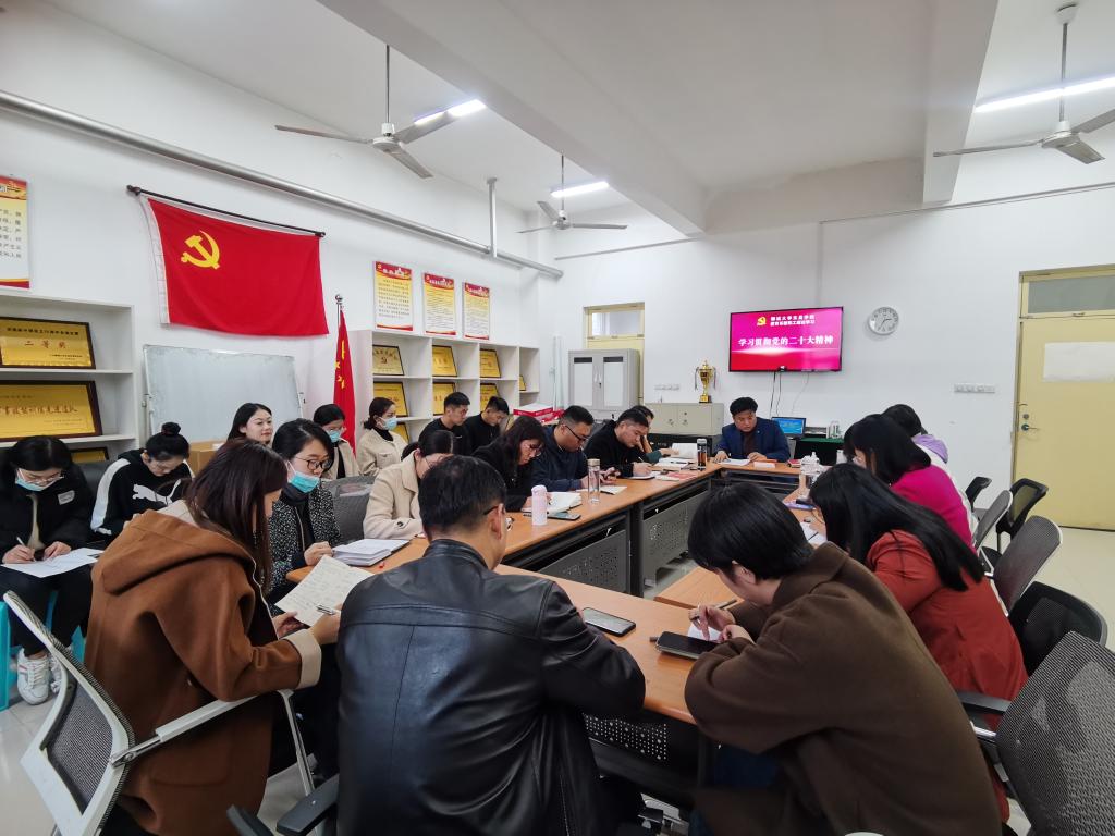 本网讯 党的二十大胜利召开以来,学院党委迅速行动,把学习好、宣传好、贯彻好党的二十大精神作为当前和今后一个时期的首要政治任务,全力在掌握精神实质上下工夫,让党的二十大精神在校园落地生根。连日来,全院各级党组织通过“三会一课”、主题党日等多种形式组织开展集体学习,认真领悟党的二十大提出的新思想新论断,作出的新部署新要求,并结合工作实际,把学习成果转化为推动学院高质量内涵发展的强大动力。