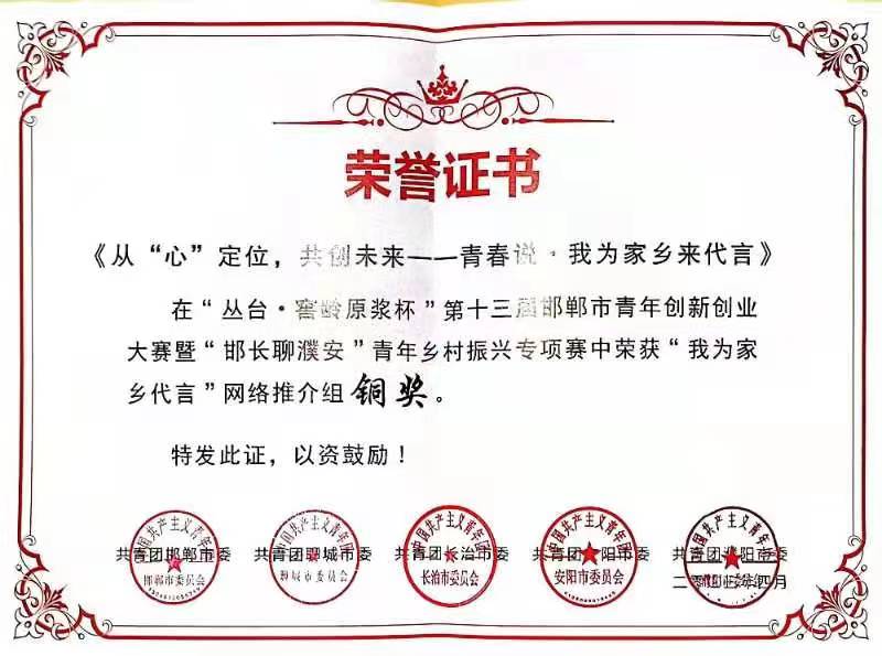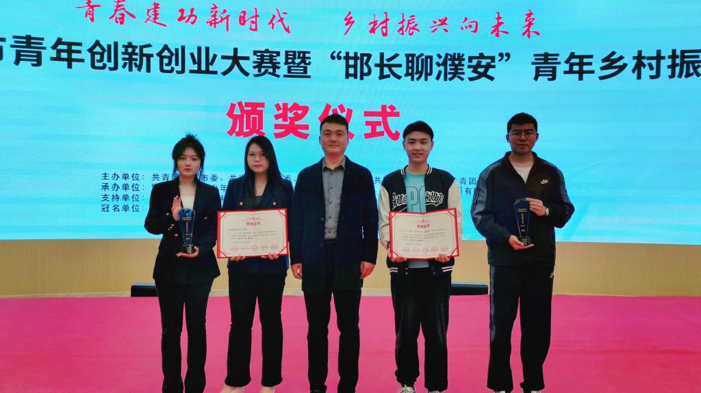 本网讯 4月16日,“邯长聊濮安”青年乡村振兴专项赛决赛在邯郸市成功举办。入围决赛的31支参赛队伍分别来自邯郸市、长治市、聊城市、濮阳市、安阳市、北京市等地,他们齐聚赛场,进行巅峰对决。本次大赛由共青团邯郸市委、共青团长治市委、共青团聊城市委、共青团濮阳市委、共青团安阳市委联合举办。由院团委推荐的2个青年创新创业项目荣获1金1铜的优异成绩。