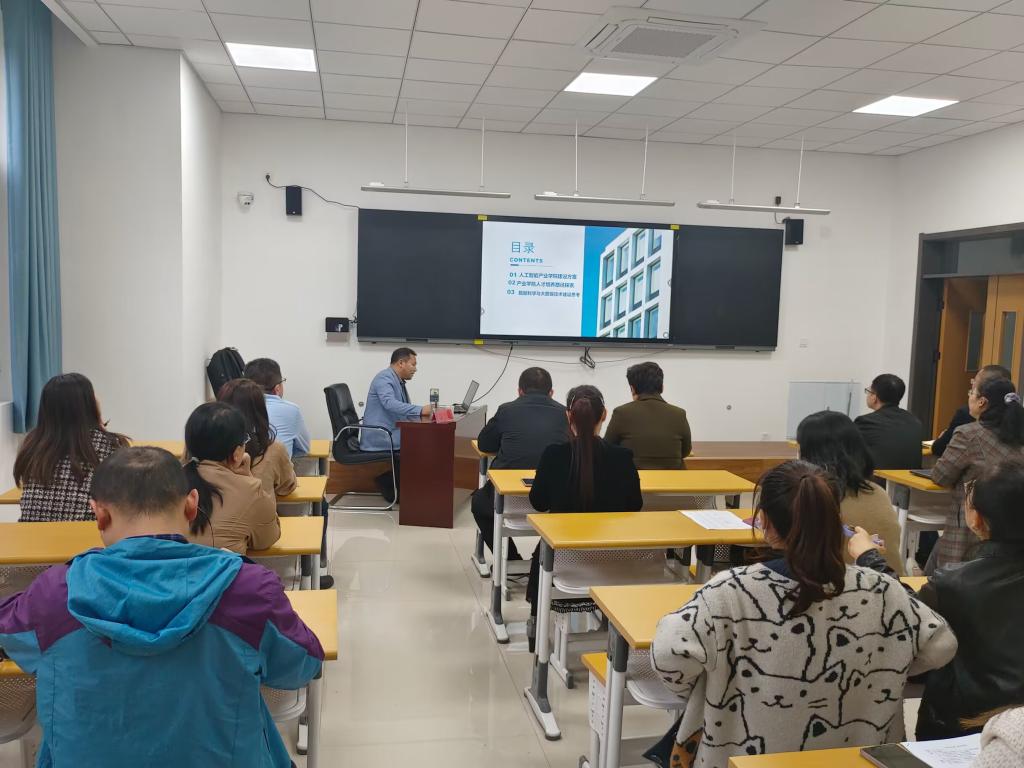 国忠金教授分别从人工智能产业学院建设方案、产业学院人才培养路径探索以及数据科学与大数据技术专业建设三个方面进行了详细论述,从专业角度为老师们答疑解惑。此外,国忠金教授还就泰山学院与多家企业合作解决学生的就业问题,提高学生的专业实践能力以及打造特色专业集群的方案做出经验分享。