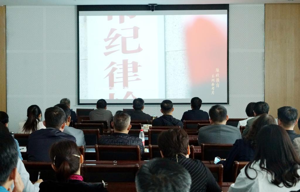 中共山东省委党校李海龙教授受邀作《坚定推进全面从严治党,以自我革命引领社会革命》报告,为全体领导干部深刻把握全面从严治党提供了有力指导。全体人员观看了警示教育宣传片,进一步强化党性修养。