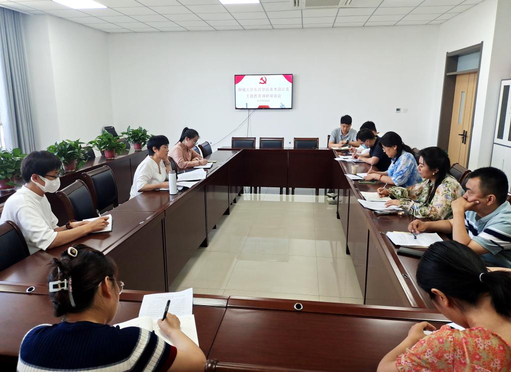 本网讯 以深化调查研究推动解决发展难题,是学习贯彻习近平新时代中国特色社会主义思想主题教育的重要内容。6月8日,院长助理、组织宣传部部长王淑珍到美术设计系开展主题教育调研座谈,美术设计系党总支书记成洁萍、副主任张阳以及系教师党员代表参会。