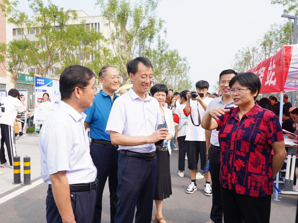 上午9:30,院长邵鑫、党委副书记王敦强、副院长王迎秋等院领导及相关职能部门负责人来到迎新现场,详细了解新生报到情况,看望慰问新生及迎新工作人员、志愿者,要求全力做好站点布置、秩序维护、车辆引导等各环节迎新服务,确保迎新各项工作顺利开展。