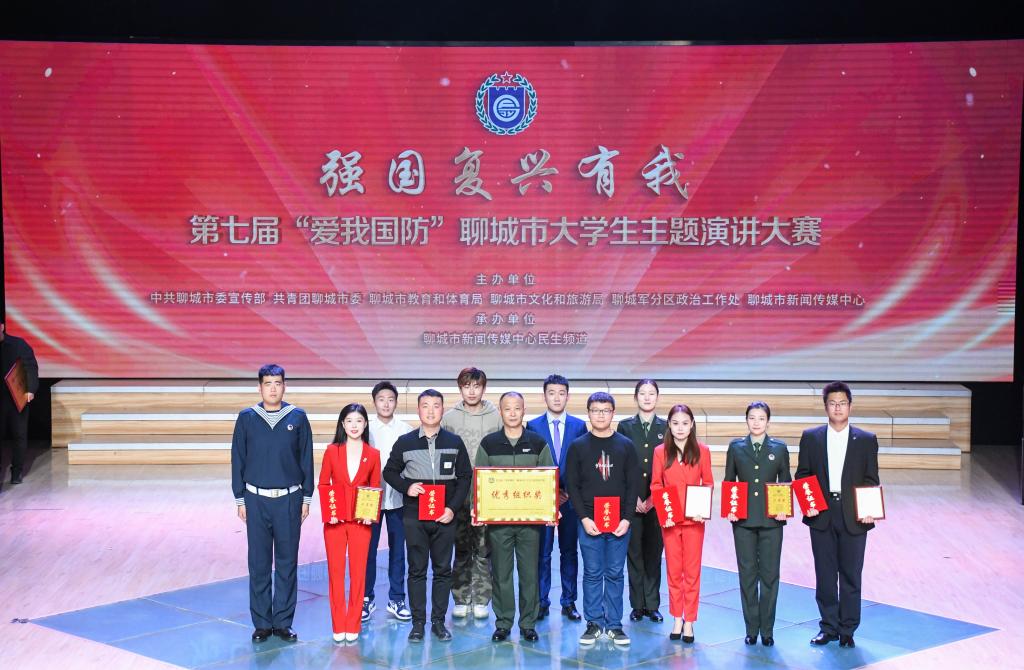 本网讯 为加强国防教育,引导广大青年增强国防观念,厚植爱国情怀,11月10日下午14时30分,第七届“爱我国防”聊城市大学生主题演讲大赛,在聊城市电视台举办,我院共有4组选手参加比赛,30名学生参与现场观摩,院长助理、中文系党总支书记刘广星受邀出席并在嘉宾席就坐。