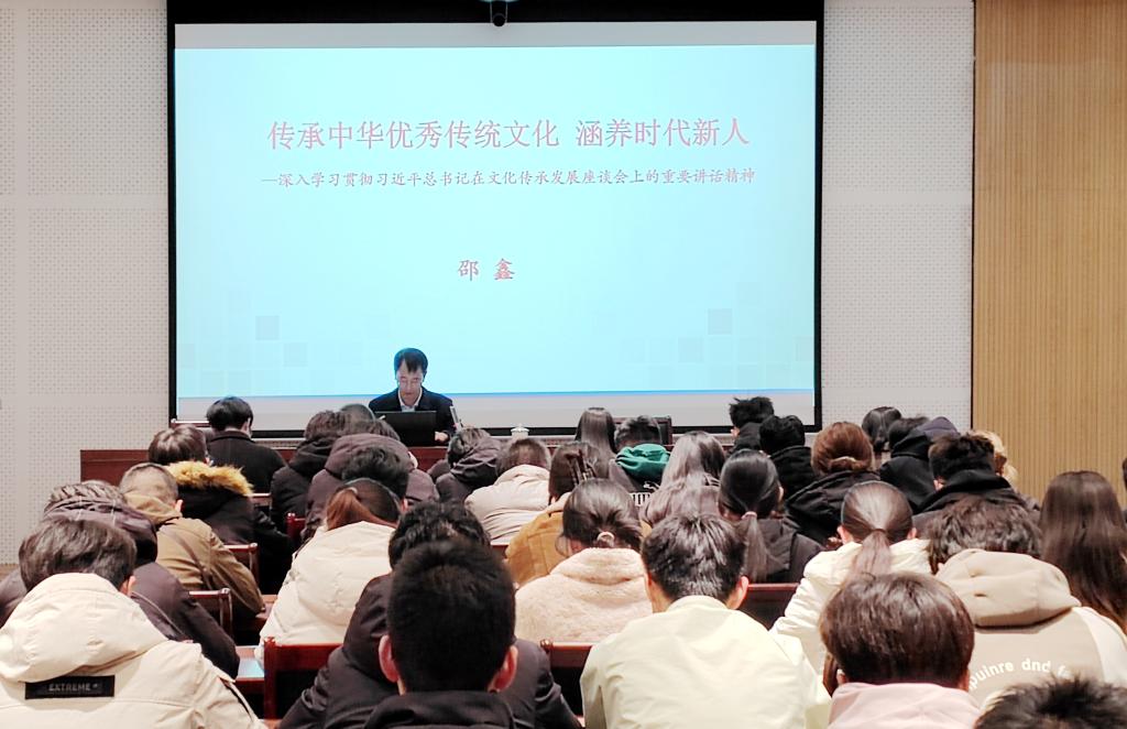 邵鑫围绕“历史悠久缔造中华文化”“深刻理解‘第二个结合’的历史必然性”“深刻理解‘五个突出特性’的时代价值”和“笃定前行建设现代文明”四个方面,深刻解读了传承中华优秀传统文化的重要意义。他指出,要领会和把握中华文明连续性、创新性、统一性、包容性、和平性五个突出特性,深刻认识中华优秀传统文化是中华民族的精神命脉、文化自信的坚实根基和兴党治国的宝贵资源;坚定不移走中国特色社会主义道路,坚持守正不守旧、尊古不复古的进取精神,坚定维护国家统一,坚决反对分裂,铸牢中华民族共同体意识,坚持多元并包、兼收并蓄、开放交流,做世界和平的建设者、全球发展的贡献者、国际秩序的维护者。他强调,在新的起点上继续推动文化繁荣、建设中华民族现代文明,要坚定文化自信、秉持开放包容、坚持守正出新;要以只争朝夕、奋发有为的奋斗姿态更好担负起新的文化使命,以守正创新的正气和锐气努力建设中华民族现代文明,不断铸就中华文化新辉煌、谱写民族复兴新华章。