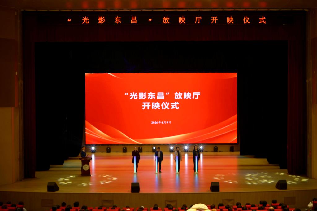 王敦强在致辞中指出,“光影东昌”开映,标志着学校新增一处集思想引领与文化熏陶于一体的育人新平台。他强调,启动只是开始,用好才是关键,要始终坚持正确导向,牢牢守住育人根本;坚持以师生为本,持续提升服务水平;要深化融合创新,打造特色育人品牌,让“光影东昌”真正成为思政教育的新课堂、文化育人的新载体、师生共享的精神家园。