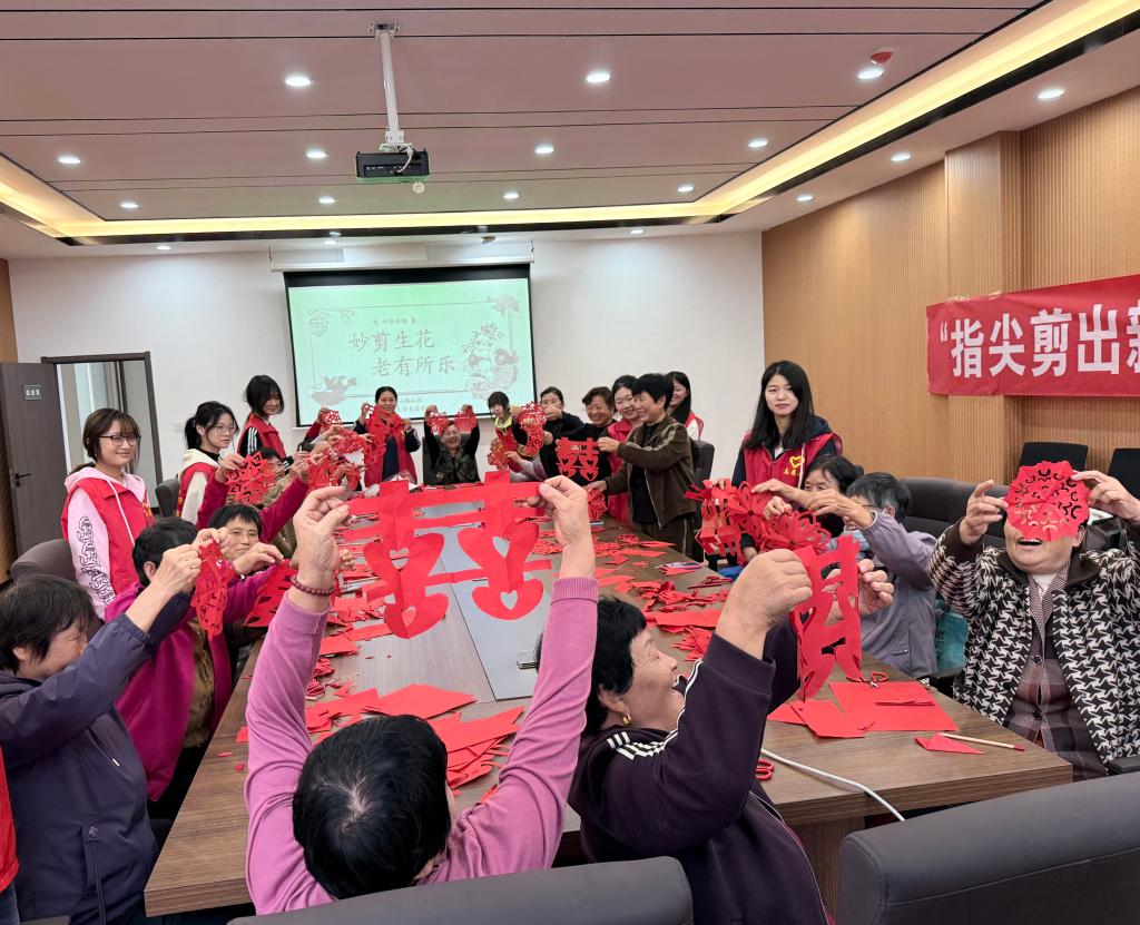 活动伊始,志愿者首先向现场老年人分发了剪纸工具与材料,并详细介绍了剪纸艺术的历史渊源和文化内涵,让老人们对这项传统民间艺术有了更深入的了解。在剪纸教学环节,志愿者们从最基础的折纸方法入手,耐心细致地分步演示剪纸技巧。对于操作节奏较慢或尚未熟练掌握要领的老人,志愿者们主动放慢节奏,反复示范、逐一讲解。老人们学习热情高涨,积极参与,不时与志愿者交流互动,现场欢声笑语不断。有的老人还分享了自己年轻时做手工的经历,与志愿者们共同回忆往昔岁月。在轻松愉快的氛围中,一件件精美的剪纸作品陆续完成。活动结束后,老人们高兴地举起作品与志愿者合影留念,记录下这温馨而难忘的瞬间。