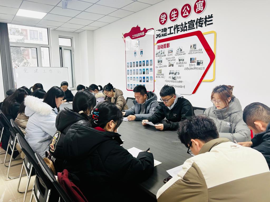 本网讯 12月17日,数学与信息工程系学生公寓党建工作站组织开展主题党日活动,深入学习贯彻党的二十届四中全会精神。团总支负责人田秀娟、专职辅导员任维昊、白林涛出席活动,学生党员及大一学生代表参加学习。