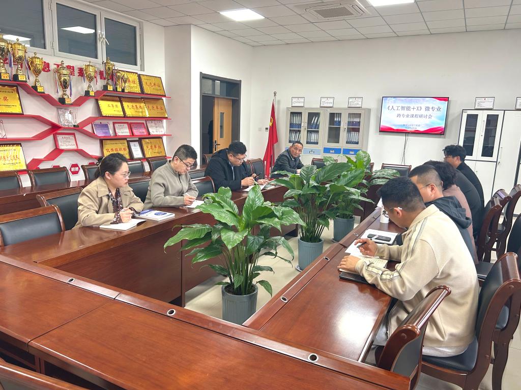 本网讯 为深入推进课程改革,实现微专业“人工智能+X”跨学科课程建设,4月2日,数学与信息工程系联合机电工程系、化学与生物系、影视传媒系,共同举办《人工智能+X实战》课程跨专业研讨会。数学与信息工程系主任张晶、副主任王开宝、化学与生物系副主任刘凯、影视传媒系副主任马俊臣、机电工程系教师邢金鹏及数学与信息工程系相关专业教师参加研讨。