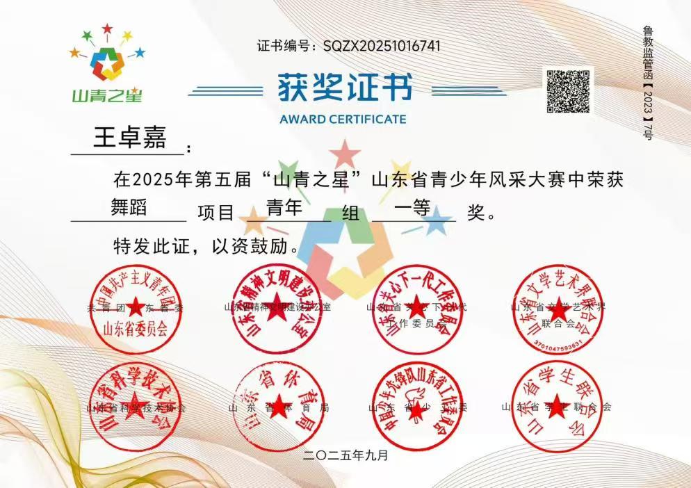 近期,我校在第五届“山青之星”山东省青少年风采大赛中获奖