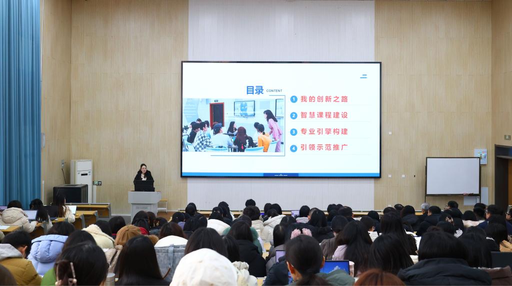 1月23日,学校举办“双核驱动:师-生-AI三元协同下的智慧课程建设与专业(学科)引擎构建”专题培训。