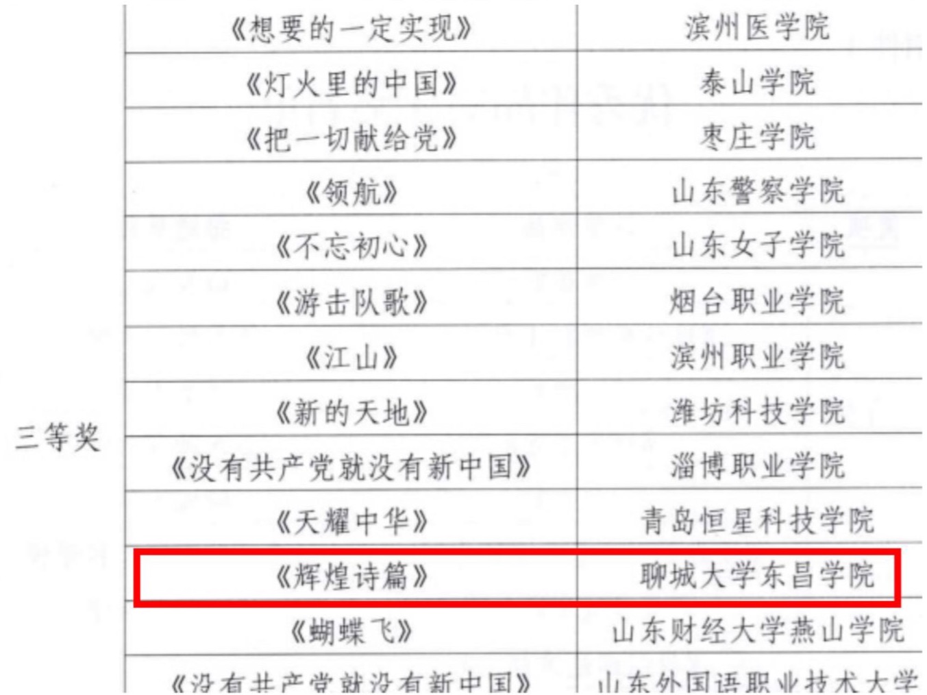 我院报送的混声合唱《辉煌诗篇》获“喜迎二十大 心声献给党”山东省大学生合唱展演三等奖。