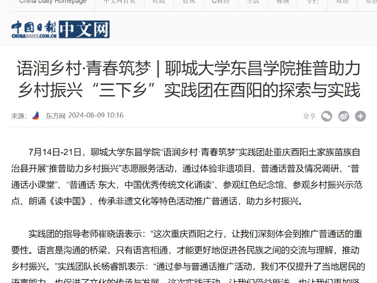 我校“语润乡村,青春筑梦”推普助力乡村振兴实践活动登上中国日报中文网。