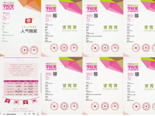 其中人气银奖一项,毓荐人气奖第三名一项,优秀奖十一项,入围奖十七项,企业优秀奖两项,企业入围奖一项,我校教师李焕君获优秀指导教师。