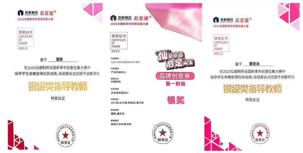 我校美术设计系学生刘心畅、阮文倩、韩艳茹、夏文韵参赛团队作品《先安诺包装设计》,荣获产品包装设计类银奖。