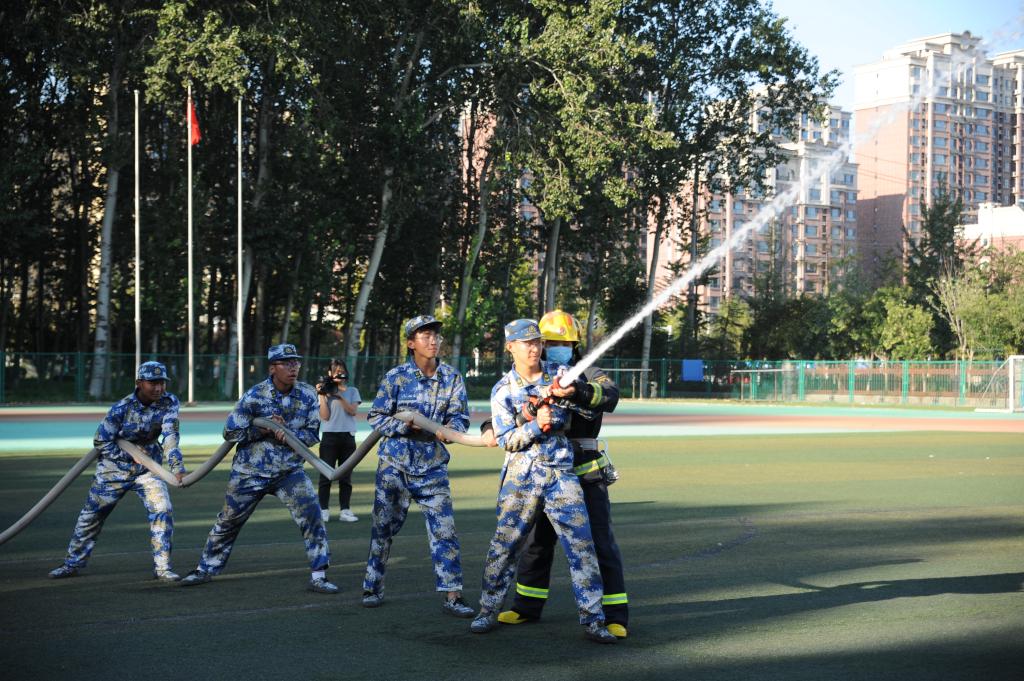 9日7日下午,军训团与保卫处联合举行2022级新生消防逃生疏散演练,2022级新生1400余人参加。